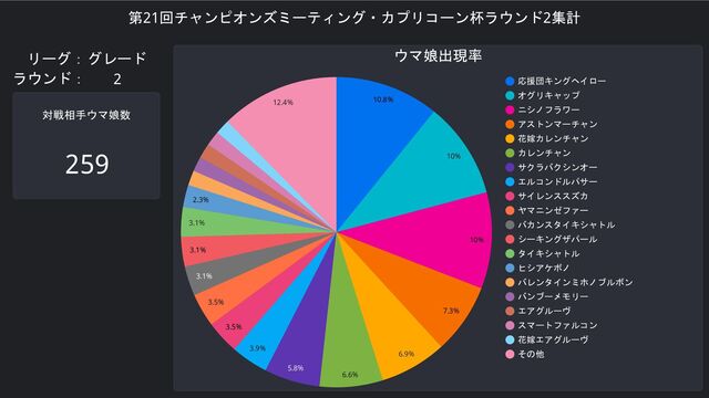 逃げ3 逃げ4 逃げ5 逃げ6 0% 20% 40% 60% 80% 100% 30.72% 44.07% 21.15% 3.83% 0.23% 0.00% 0.00% 先行割合 先行0 先行1 先行2 先行3 先行4 先行5 先行6 0% 20% 40% 60% 80% 100% 0.13% 2.26% 13.30% 31.41% 33.79% 16.26% 2.85% 差し割合 差し0 差し1 差し2 差し3 差し4 差し5 差し6 0% 20% 40% 60% 80% 100% 42.33% 45.46% 12.21% 0.00% 0.00% 0.00% 0.00% 追込割合 追込0 追込1 追込2 追込3 追込4 追込5 追込6 0% 20% 40% 60% 80% 100% 43.91% 39.92% 13.86% 2.18% 0.13% 0.00% 0.00% 対戦相手の6人に それぞれの脚質が 出現する期待値 逃げ0 30.72%