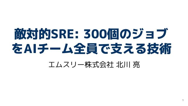敵対的SRE: 300個のジョブ をAIチーム全員で支える技術 エムスリー株式会社 北川 亮 1