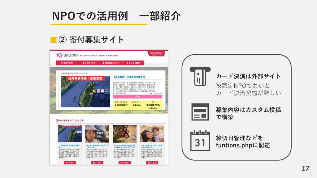 2018/06/02 WordCamp Osaka 2018 でNPOでのweb運用の一部事例と、よく使うプラグインの紹介、サイト構築で心がけていることなどを紹介させていただきました。