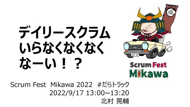 2022/9/17 Scrum Fest Mikawaのだらトラックで発表したスライドです。 https://confengine.com/conferences/scrum-fest-mikawa-2022/proposal/17149