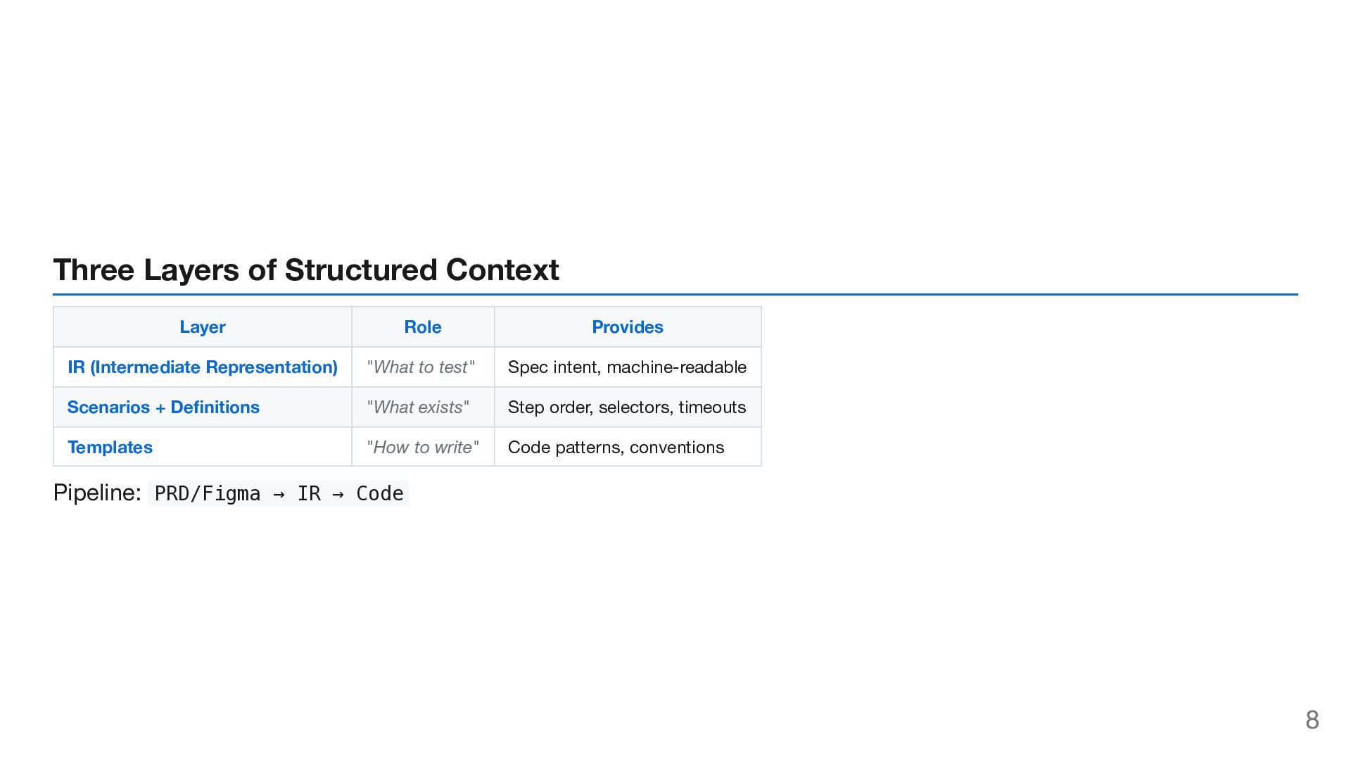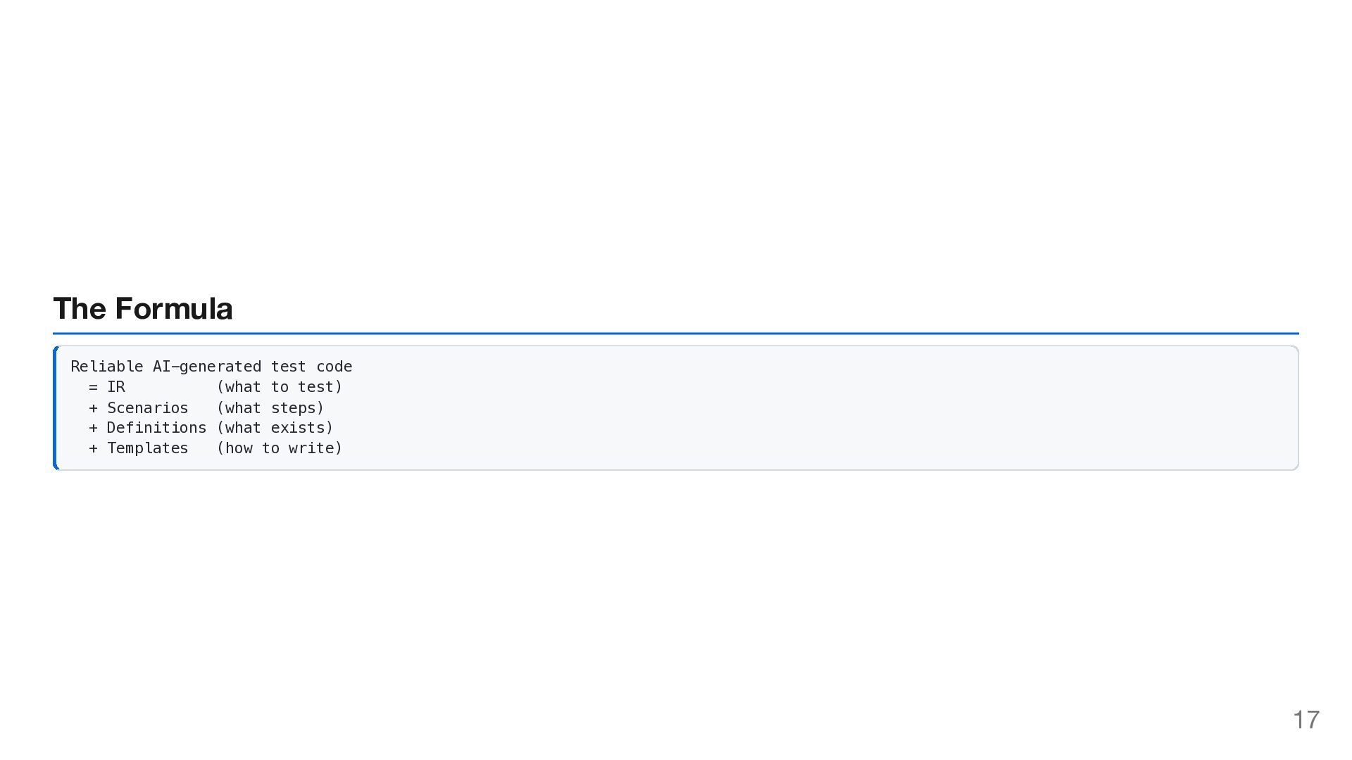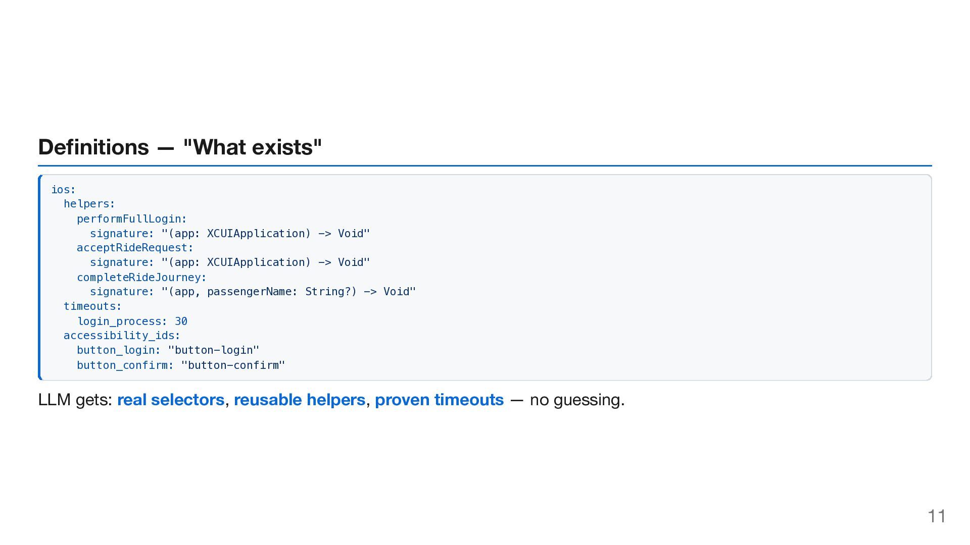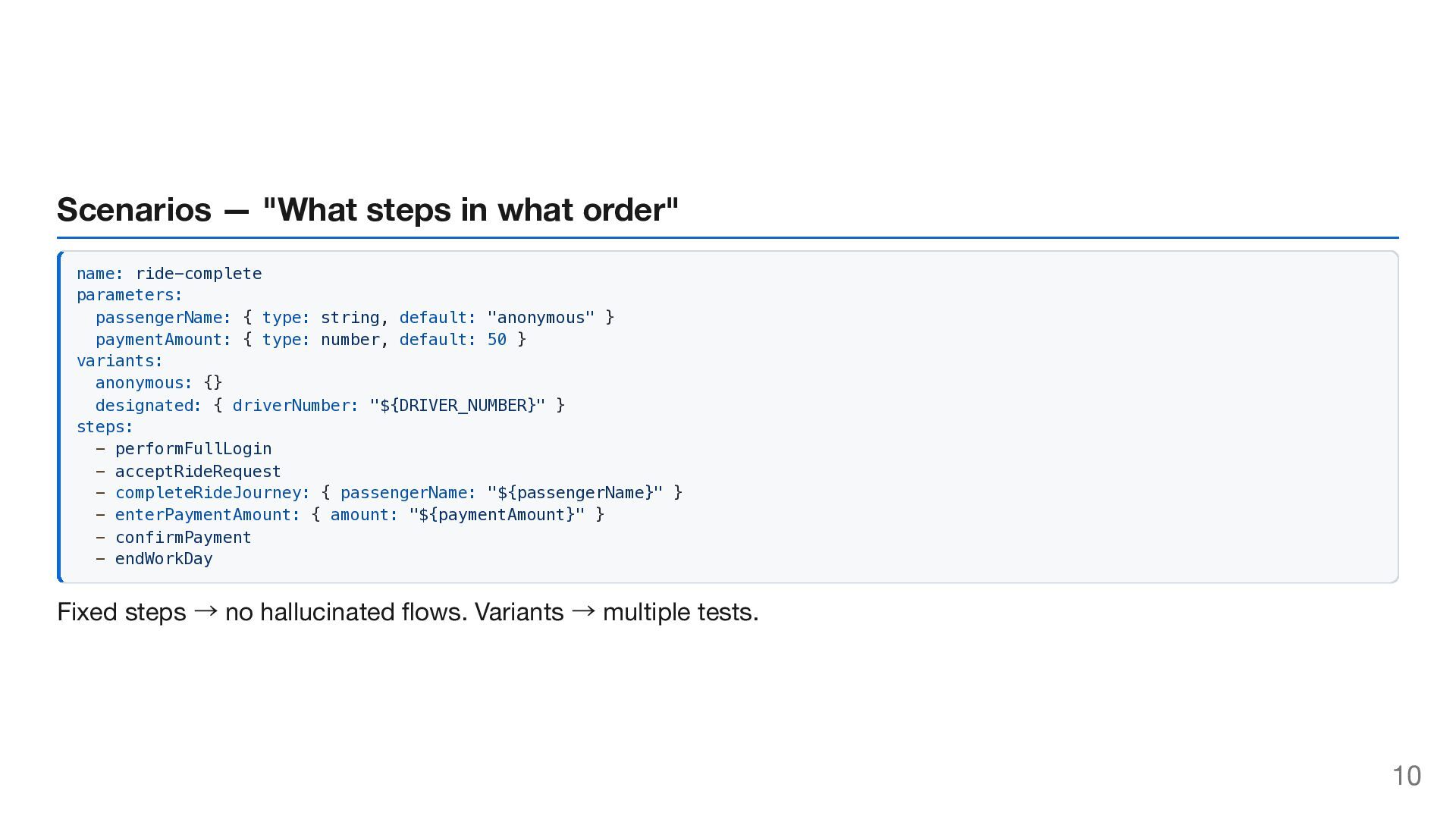 - Operator account exists input_fields: - { name: operator_name, type: select } - { name: password, type: password } - { name: branch_office, type: select } - { name: radio_number, type: text } - { name: driver_number, type: text } IR captures intent separately from implementation → prevents hallucination. 9