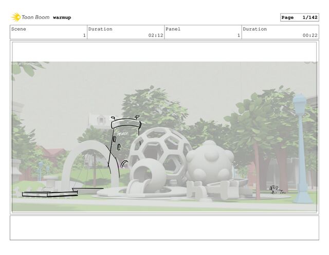 Scene 20 Duration 13:10 Panel 1 Duration 01:10 warmup Page