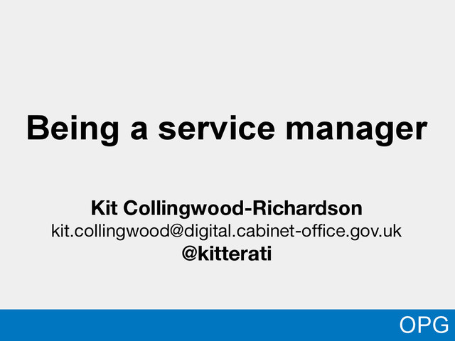 of important bits of a service manager's job. Some are things I've had to overcome in order to do my job. Others are themes I've met when coaching new service managers. If you get these things right, you should be ok. OPG