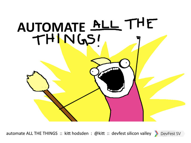 : @ki4 :: devfest silicon valley “Progress isn't made by early risers. It's made by lazy men trying to find easier ways to do something.” Robert A. Heinlein