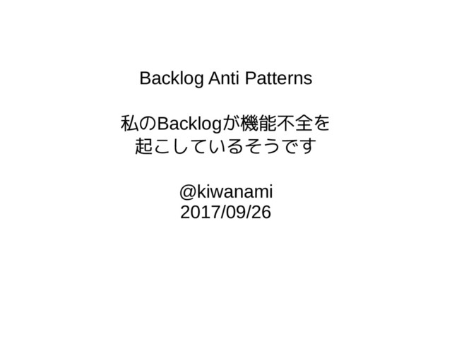 Backlog Anti Patterns 私のBacklogが機能不全を 起こしているそうです @kiwanami 2017/09/26