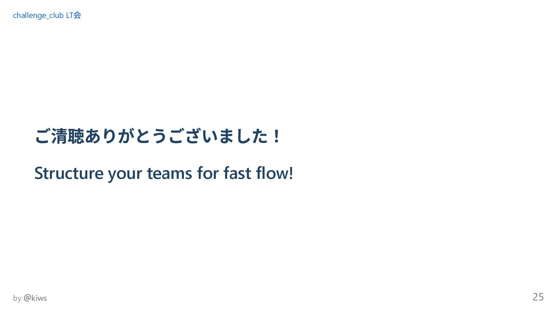 ご清聴ありがとうございました! Structure your teams for fast flow! challenge_club LT 会