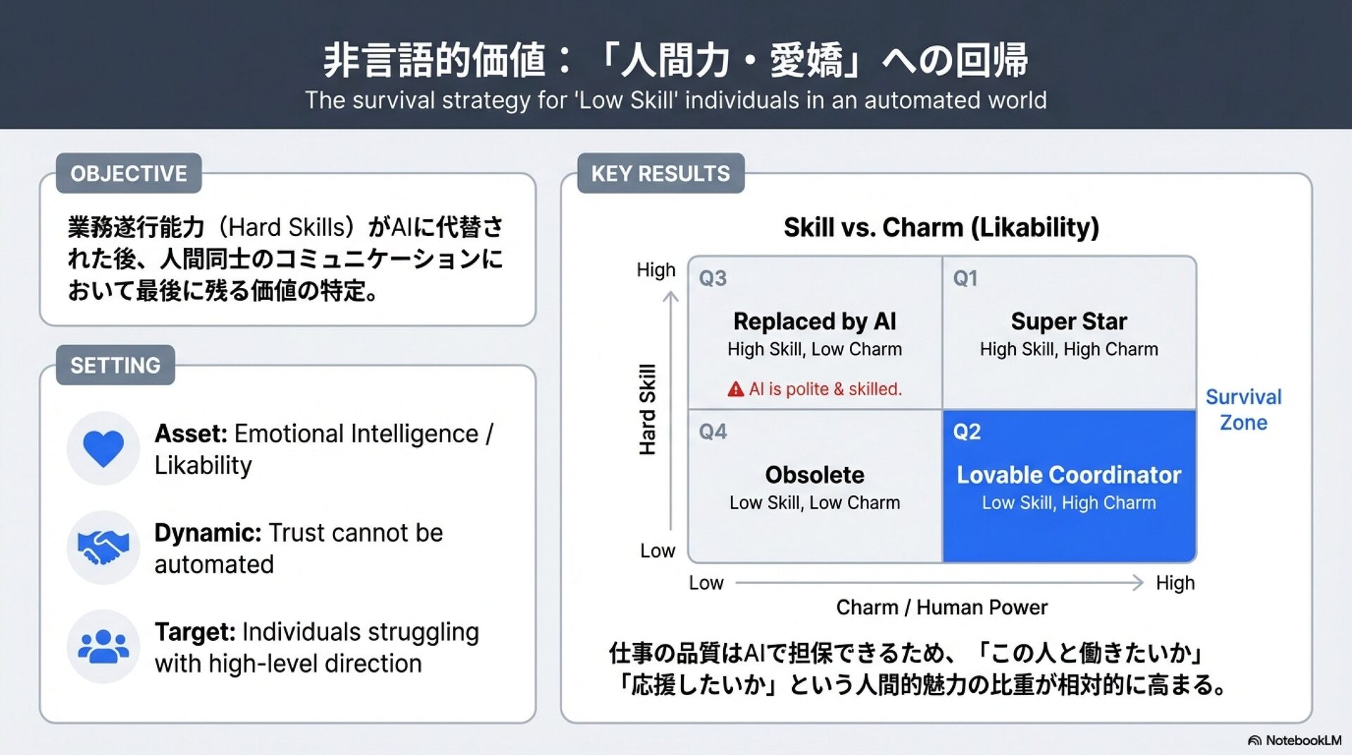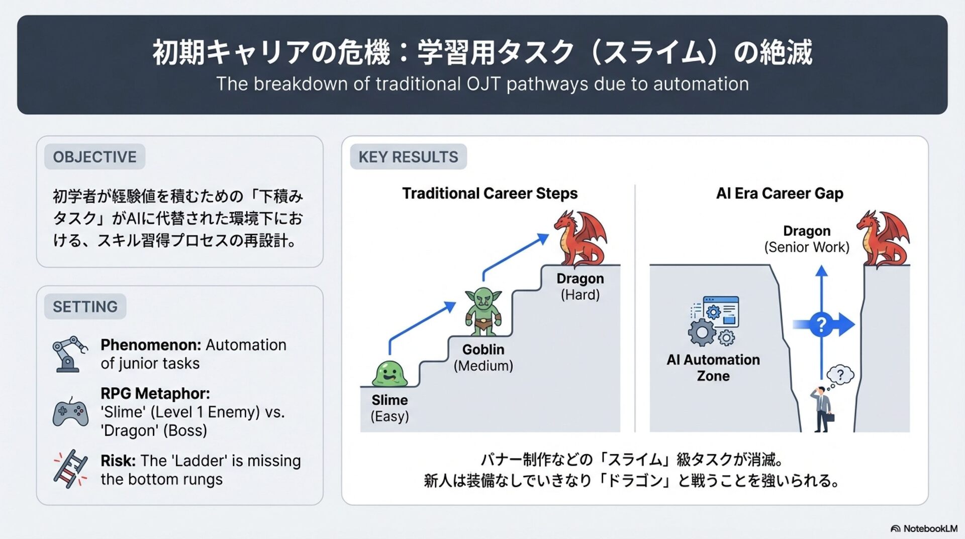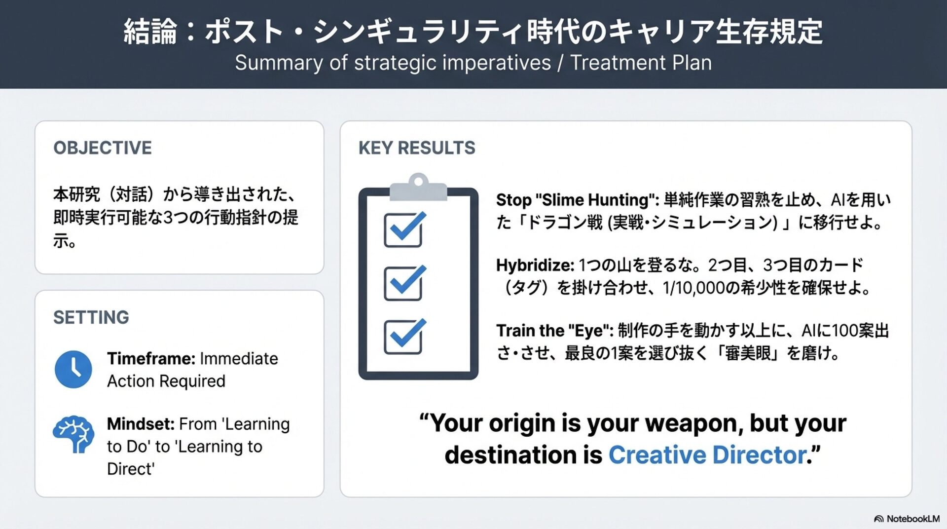 生成AI時代のキャリアアップの最適解は?人生詰まないためにどうする!?【noteCXO 深津貴之 × POSTS代表梶谷健人】のNotebookLMスライド