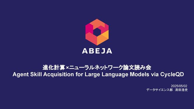 2025年5月2日に行われた進化計算×ニューラルネットワーク論文読み会(https://abeja-innovation-meetup.connpass.com/event/352604/)の発表資料です