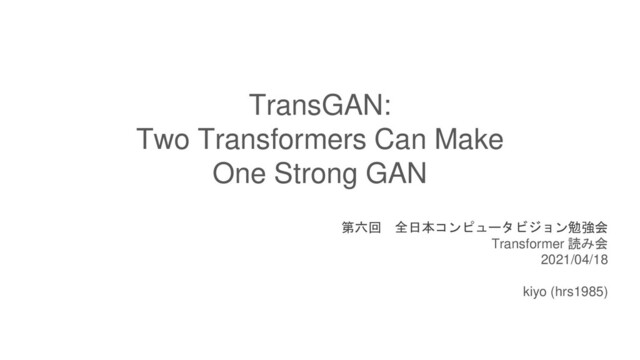 TransGAN: Two Transformers Can Make One Strong GAN 第六回 全日本コンピュータビジョン勉強会