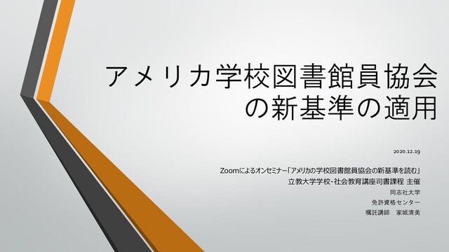 Critical thinking • 『インフォメーションパワーー パートナーシップの構築』 : IPⅡ 1998 キーワード : 協働 Collaboration, Rubric • 『21世紀を生きる学習者のための活動基準』2009 キーワード : 言語活動 Reading Reading is fundamental skill for learning, personal growth, enjoyment Contexts = 次への課題 『STANDARDS FOR 21st-CENTURY LEARNER IN ACTION』 p86 SKILL BENCHMARKS TO ACHIEVE BY GRADE 8 INDICATION1.1.5 Recognize that information has a social or cultural context… • 『アメリカの学校図書館基準』 2018 キーワード : Curate 学習指導要領2008 生きる力の定義 豊かな人間性:自立/自律、共生 学習指導要領2008 言語活動の充実