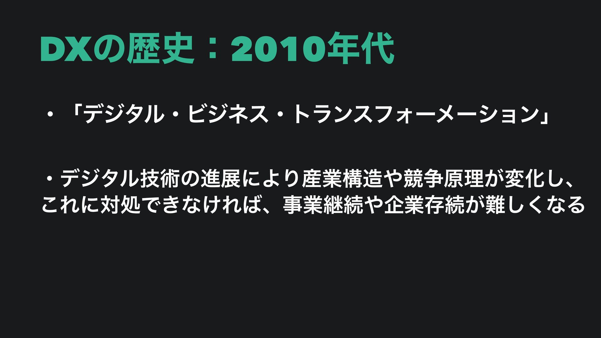 DXͷྺ࢙ɿ2010 ɾʮσδλϧɾϏδωεɾτϥϯεϑΥʔϝʔγϣϯʯ ɾσδλϧٕज़ͷਐలʹΑΓ࢈ۀߏڝ૪ݪཧ͕มԽ͠ɺ ͜ΕʹରॲͰ͖ͳ͚Εɺࣄۀܧଓاۀଘଓ͕͘͠ͳΔ
