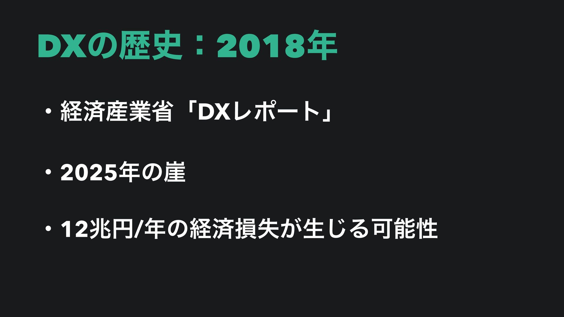 DXͷྺ࢙ɿ2018 ɾܦࡁ࢈ۀলʮDXϨϙʔτʯ ɾ2025ͷ֑ ɾ12ஹԁ/ͷܦࡁଛࣦ͕ੜ͡ΔՄೳੑ
