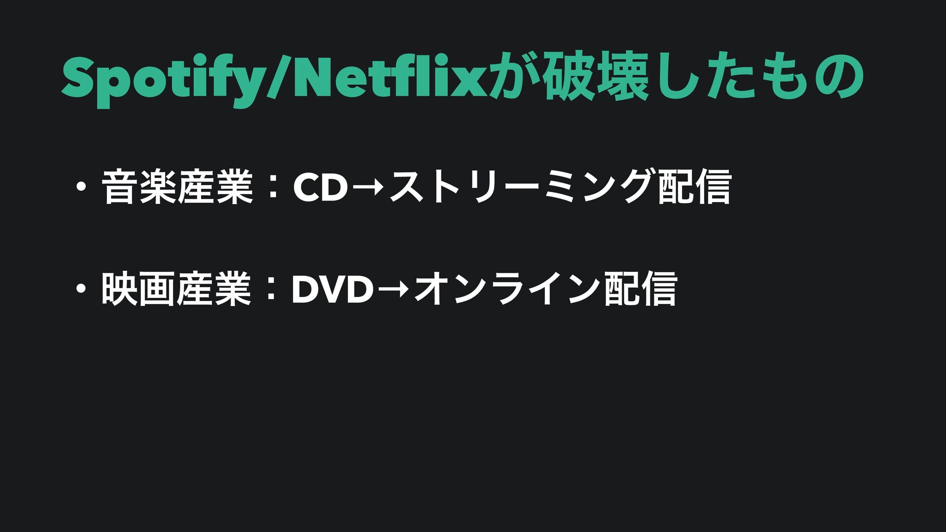 Spotify/Net fl ix͕ഁյͨ͠ͷ ɾԻָ࢈ۀɿCD→ετϦʔϛϯά৴ ɾөը࢈ۀɿDVD→ΦϯϥΠϯ৴
