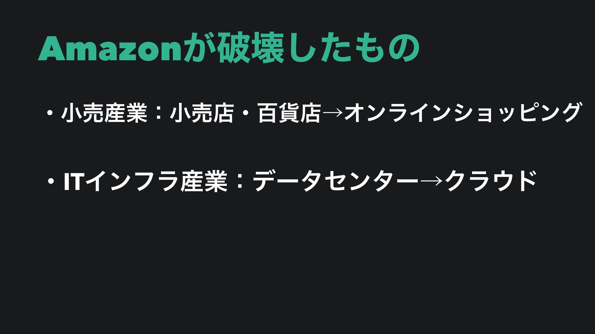 Amazon͕ഁյͨ͠ͷ ɾখച࢈ۀɿখചళɾඦ՟ళˠΦϯϥΠϯγϣοϐϯά ɾITΠϯϑϥ࢈ۀɿσʔληϯλʔˠΫϥυ