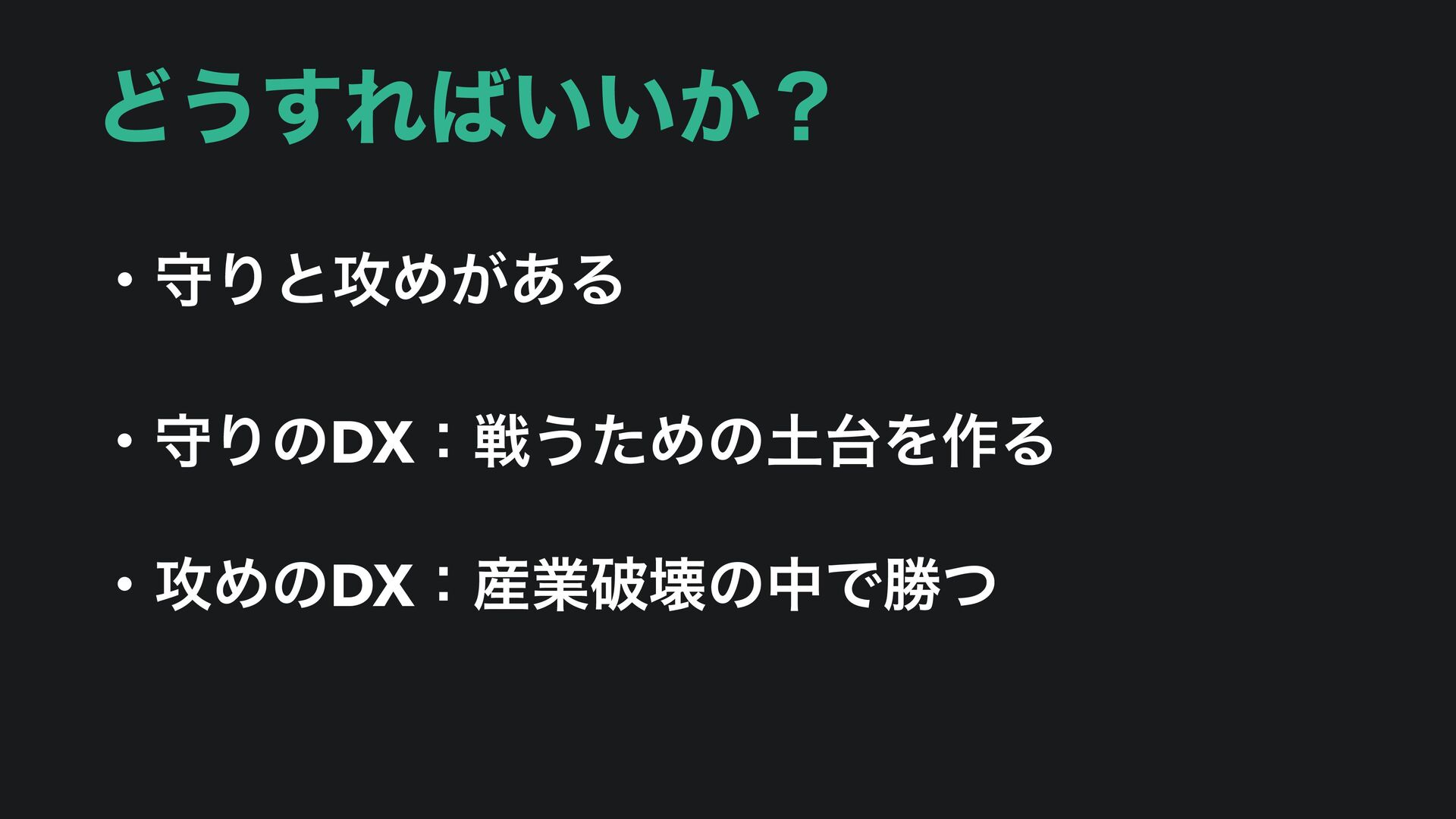 Ͳ͏͢Ε͍͍͔ʁ ɾकΓͱ߈Ί͕͋Δ ɾकΓͷDXɿઓ͏ͨΊͷΛ࡞Δ ɾ߈ΊͷDXɿ࢈ۀഁյͷதͰউͭ