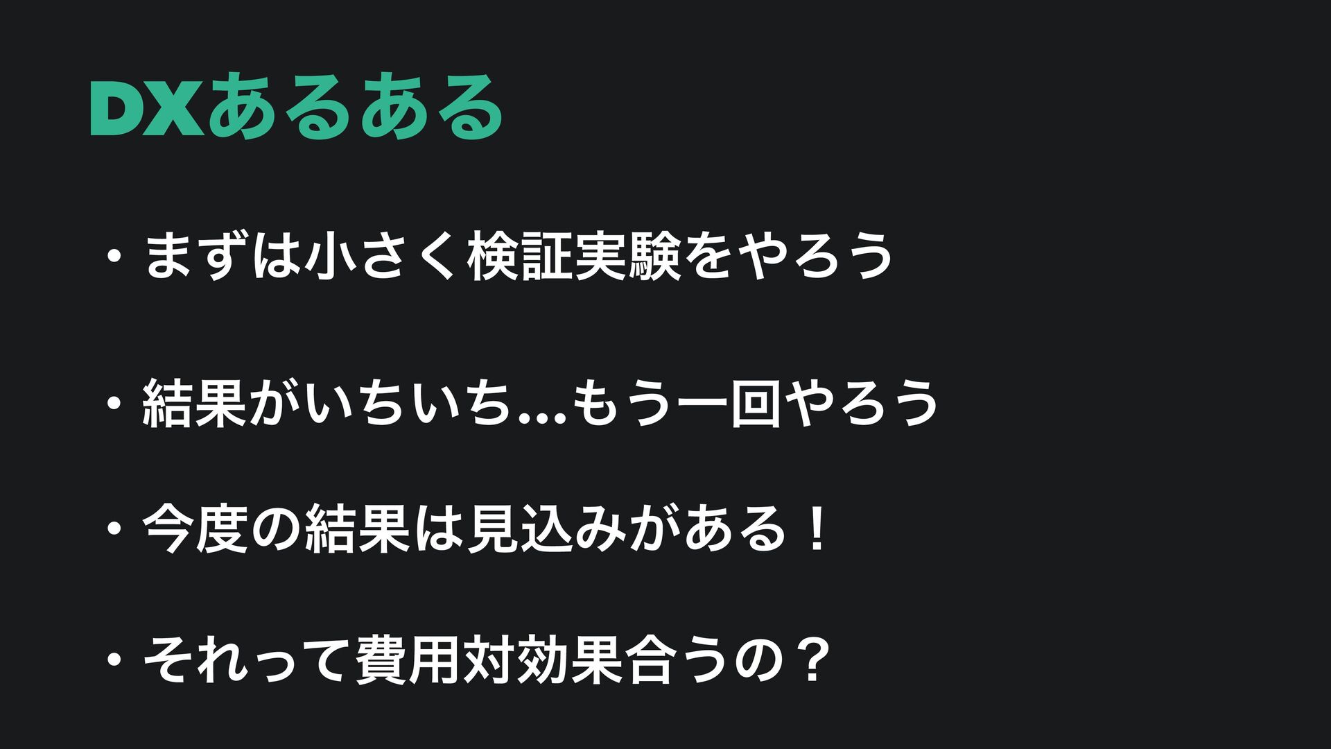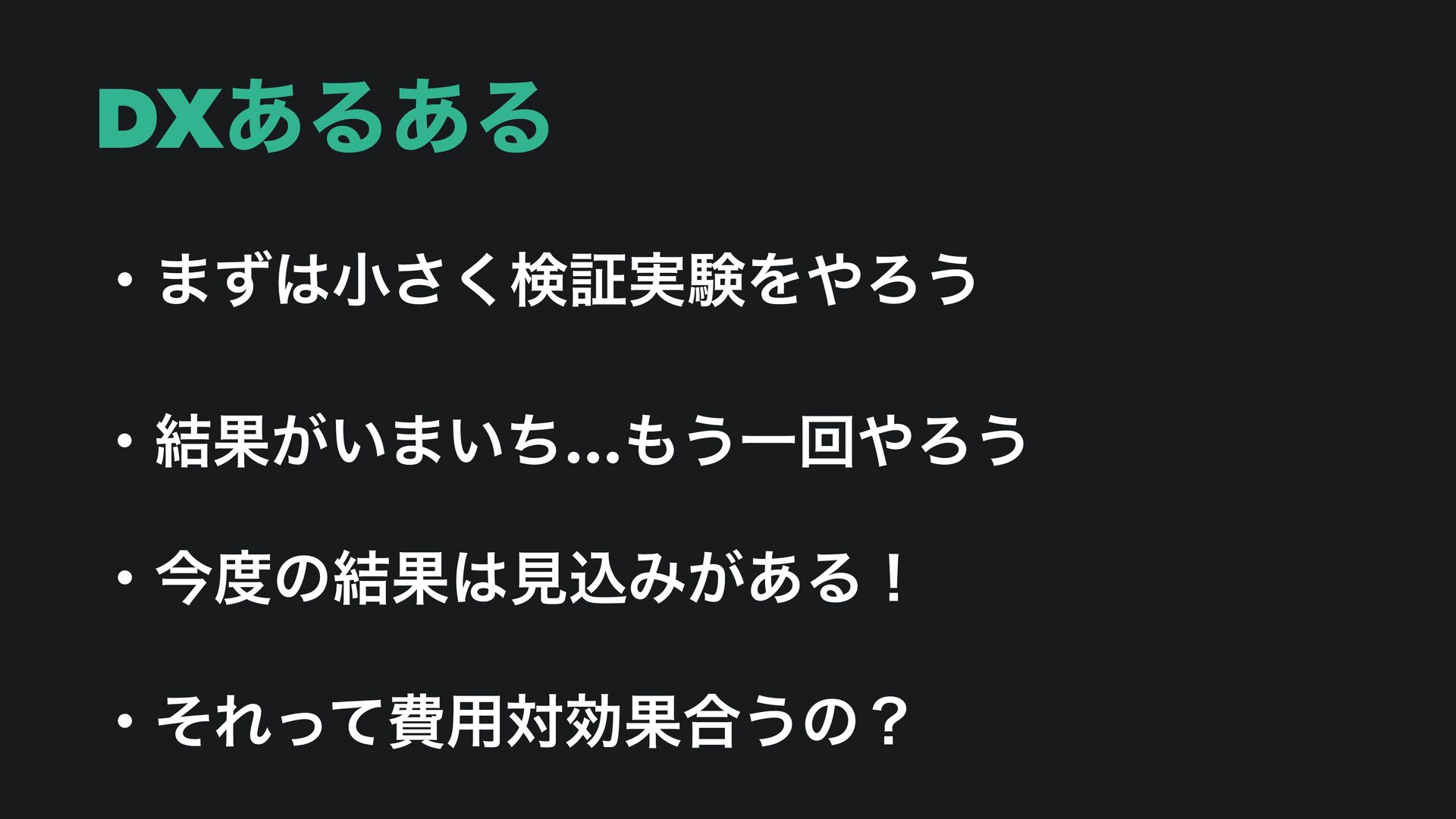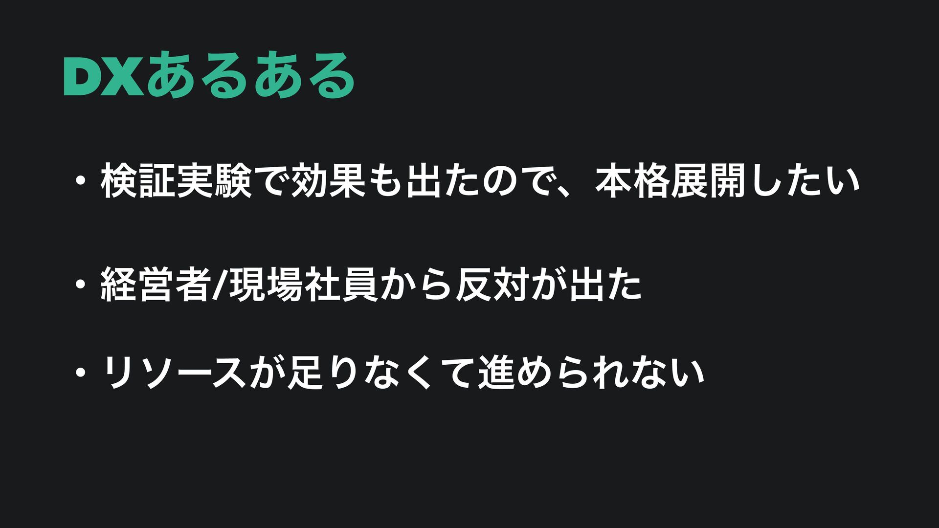 DXͷམͱ݀͠ ɾϑΣʔζɿᶃνʔϜ࡞Γᶄݕূ࣮ݧᶅ࣮ݱ ɾᶃDXਐΊΔ͜ͱʹͳ͚ͬͨͲ࣮ߦʹҠͤͳ͍… ɾᶄݕূ࣮ݧΛΔ͚Ͳ࣮ݱϑΣʔζʹਐ·ͳ͍… ɾᶅ࣮ݱʹ͚ͯಈ͍͚ͨͲࣾһ͕ಈ͔ͳ͍…