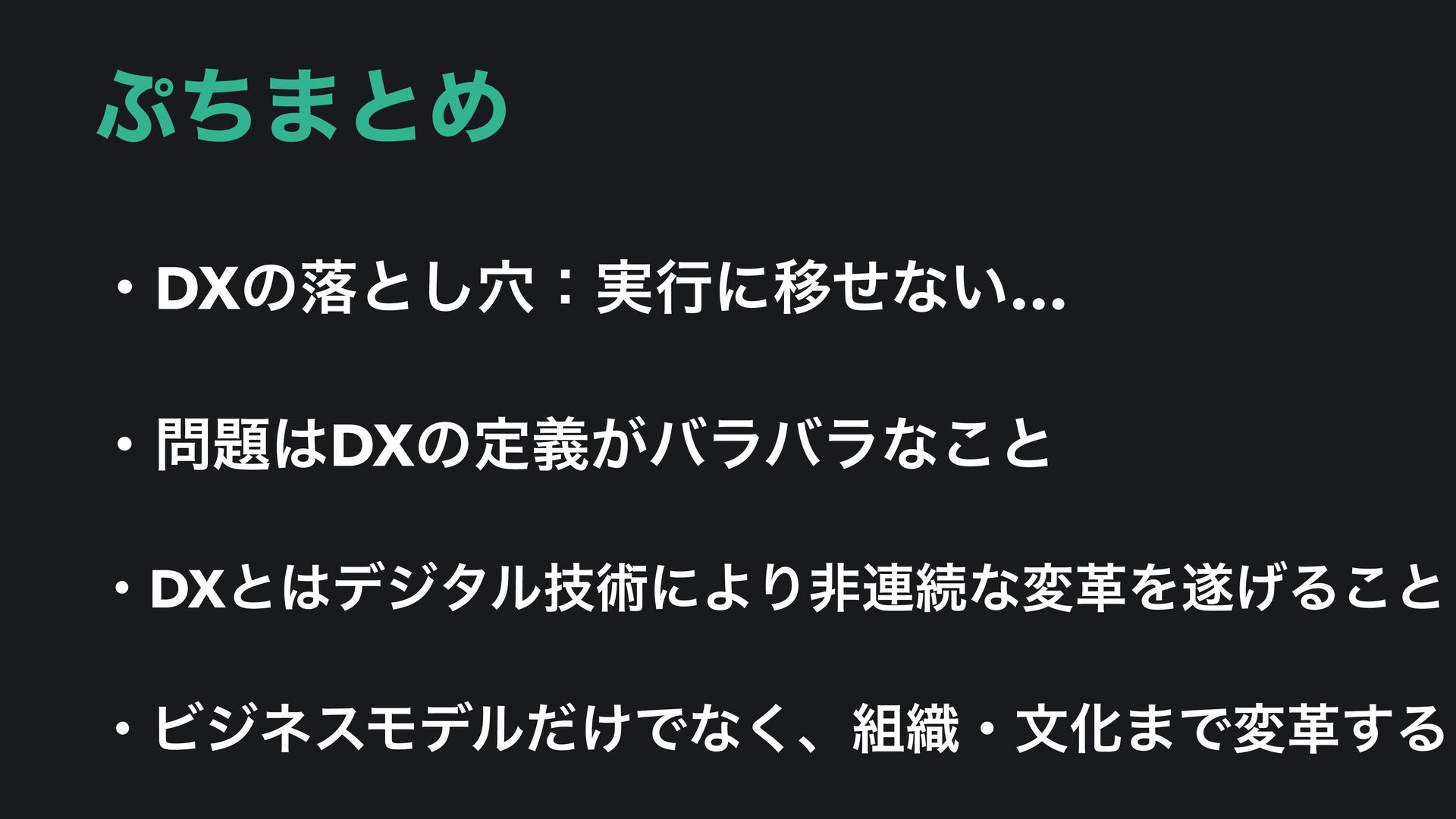 ͪ·ͱΊ ɾDXͷམͱ݀͠ɿ࣮ߦʹҠͤͳ͍… ɾDXͷఆ͕ٛόϥόϥͳ͜ͱ ɾDXͱσδλϧٕज़ʹΑΓඇ࿈ଓͳมֵΛ͛Δ͜ͱ ɾϏδωεϞσϧ͚ͩͰͳ͘ɺ৫ɾจԽ·Ͱมֵ͢Δ