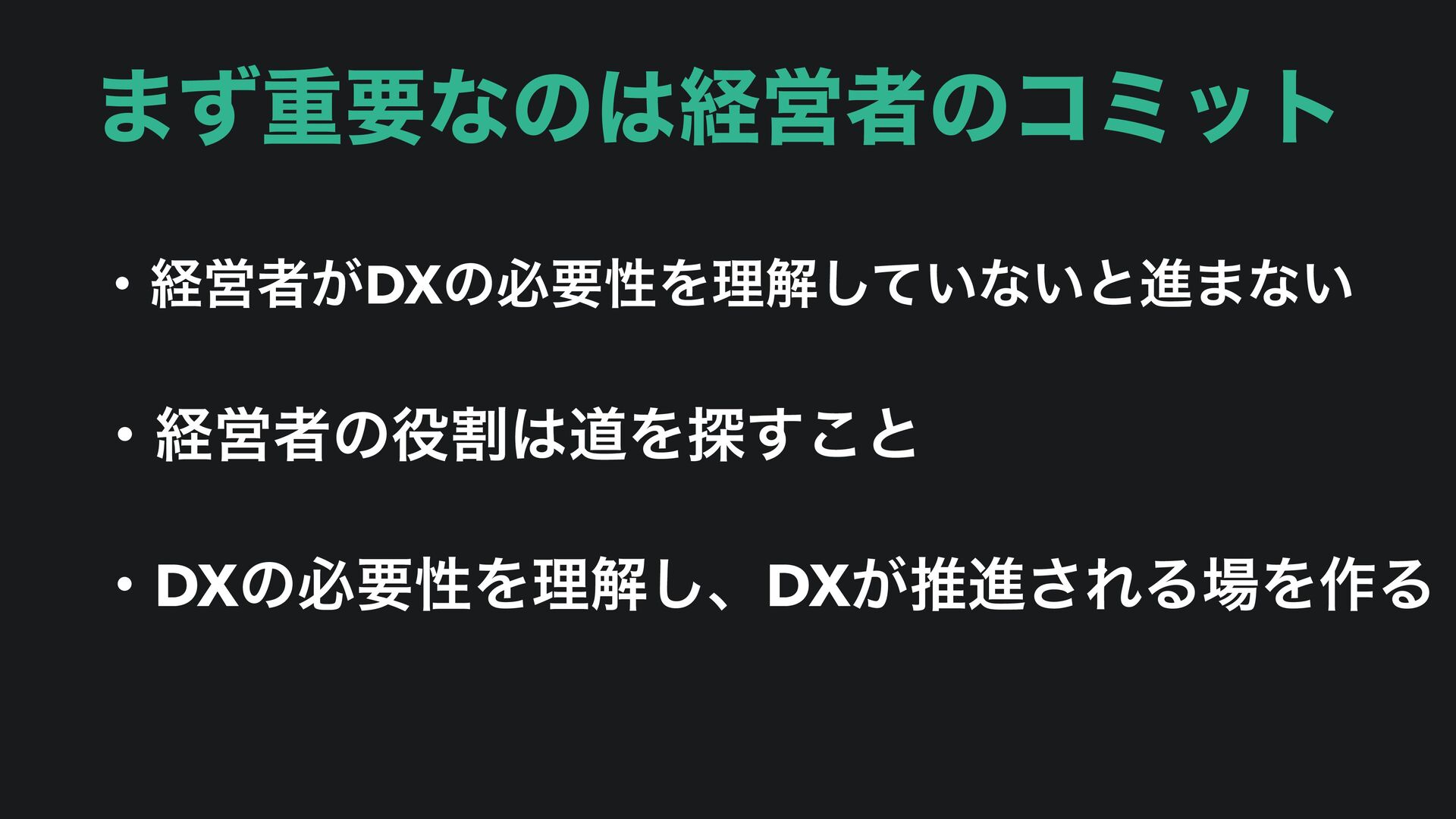·ͣॏཁͳͷܦӦऀͷίϛοτ ɾܦӦऀ͕DXͷඞཁੑΛཧղ͍ͯ͠ͳ͍ͱਐ·ͳ͍ ɾܦӦऀͷׂಓΛ୳͢͜ͱ ɾDXͷඞཁੑΛཧղ͠ɺDX͕ਪਐ͞ΕΔΛ࡞Δ