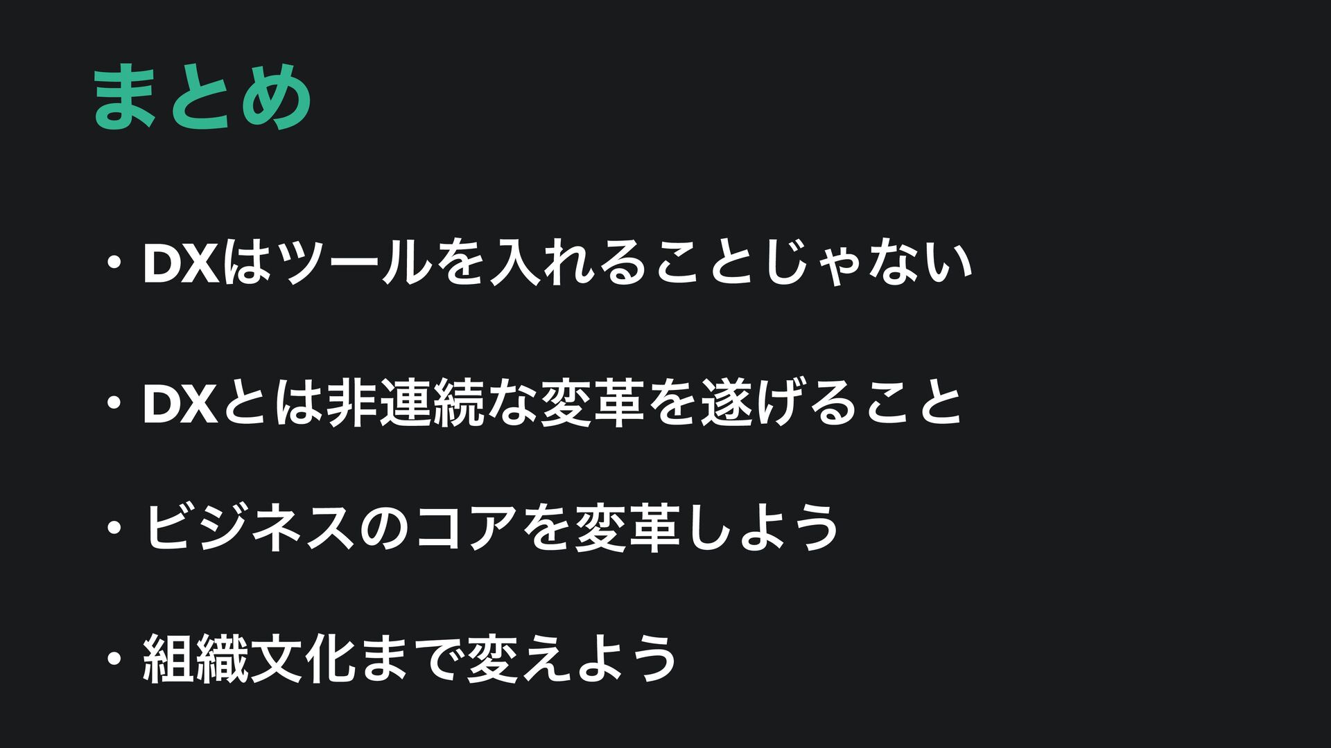 ·ͱΊ ɾDXπʔϧΛೖΕΔ͜ͱ͡Όͳ͍ ɾDXͱඇ࿈ଓͳมֵΛ͛Δ͜ͱ ɾϏδωεͷίΞΛมֵ͠Α͏ ɾ৫จԽ·Ͱม͑Α͏
