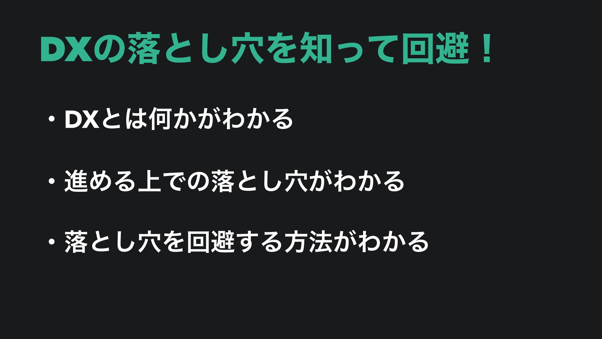 DXͷམͱ݀͠Λͬͯճආʂ ɾDXͱԿ͔͕Θ͔Δ ɾਐΊΔ্Ͱͷམͱ͕݀͠Θ͔Δ ɾམͱ݀͠Λճආ͢Δํ๏͕Θ͔Δ