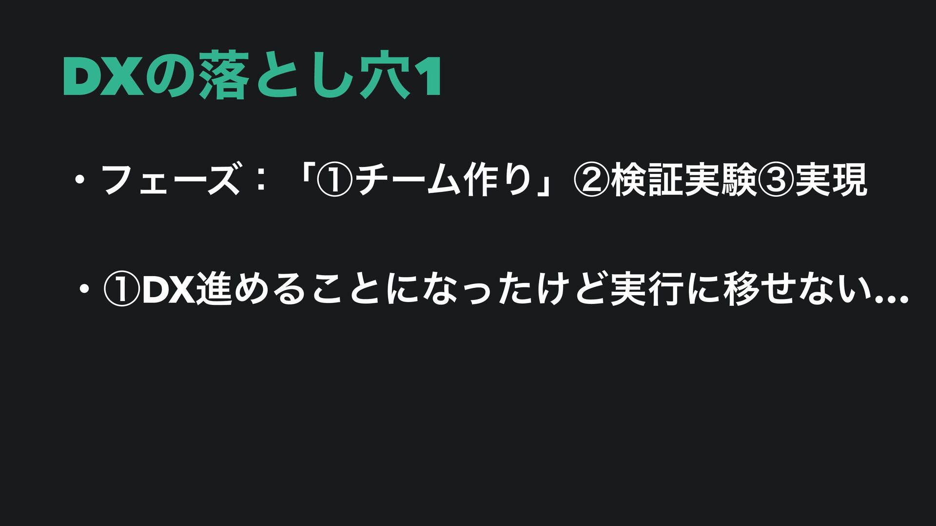 DXͷམͱ݀͠1 ɾϑΣʔζɿʮᶃνʔϜ࡞Γʯᶄݕূ࣮ݧᶅ࣮ݱ ɾᶃDXਐΊΔ͜ͱʹͳ͚ͬͨͲ࣮ߦʹҠͤͳ͍…