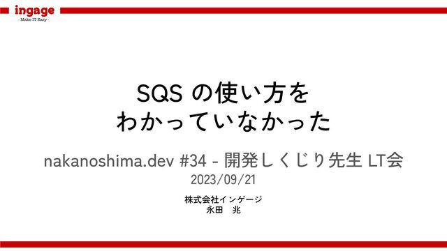 SQS の使い方を わかっていなかった nakanoshima.dev #34 - 開発しくじり先生 LT会 2023/09/21 株式会社インゲージ