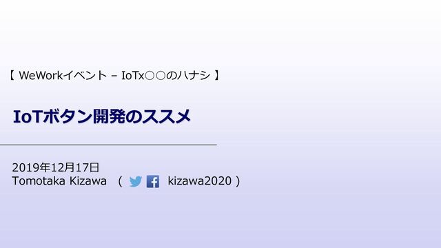 IoTボタン開発のススメ 【 WeWorkイベント – IoTx◦◦のハナシ 】 2019年12月17日 Tomotaka Kizawa (