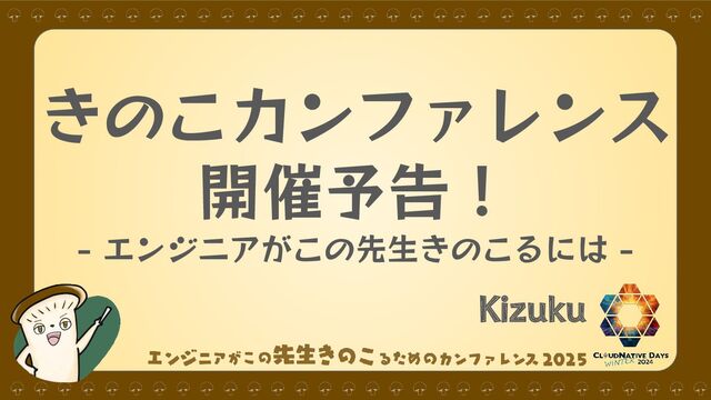 きのこカンファレンス 開催予告! - エンジニアがこの先⽣きのこるには - Kizuku