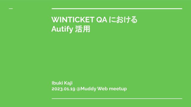 WINTICKET QA における Autify 活用 Ibuki Kaji 2023.01.19 @Muddy Web