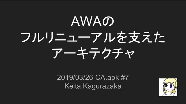 AWAの フルリニューアルを支えた アーキテクチャ 2019/03/26 CA.apk #7 Keita Kagurazaka