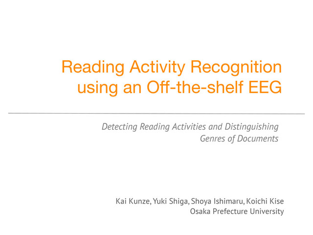 Abstract—The document analysis community spends substan- tial resources towards computer recognition of any type of text (e.g. characters, handwriting, document structure etc.). In this paper, we introduce a new paradigm focusing on recognizing the activities and habits of users while they are reading. We describe the differences to the traditional approaches of document analysis. We present initial work towards recognizing reading activities. We report our initial findings using a commercial, dry electrode Electroencephalography (EEG) system. We show the feasibility to distinguish reading tasks for 3 different document genres with one user and near perfect accuracy. Distinguishing reading tasks for 3 different document types we achieve 97 % with user specific training. We present evidence that reading and non-reading related activities can be separated over 3 users using 6 classes, perfectly separating reading from non-reading. A simple EEG system seems promising for distinguishing the reading of different document genres.