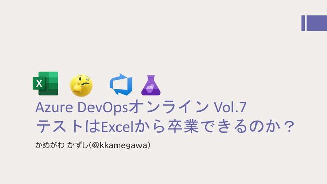 Azure DevOpsオンライン Vol.7 テストはExcelから卒業できるのか? かめがわ かずし(@kkamegawa)