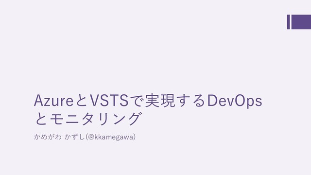 and Development Tools (2012/7~) Twitter : @kkamegawa Facebook : https://www.facebook.com/kkamegawa/ Blog : http://kkamegawa.hatenablog.jp SlideShare : https://www.slideshare.net/kkamegawa/ 出版など アジャイルでやってみた。 http://www.shuwasystem.co.jp/products/7980html/4740.html Build InsiderでWindows Subsystem for Linux掲載中 http://www.buildinsider.net/enterprise/wsl Team Foundation Server 2017コンプリートガイド https://www.amazon.co.jp/dp/B073YCLHTC/