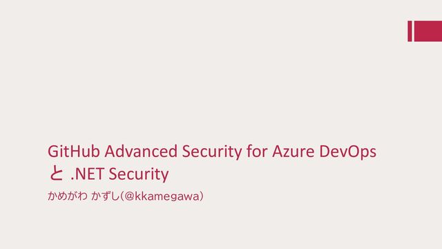 GitHub Advanced Security for Azure DevOps と .NET Security かめがわ