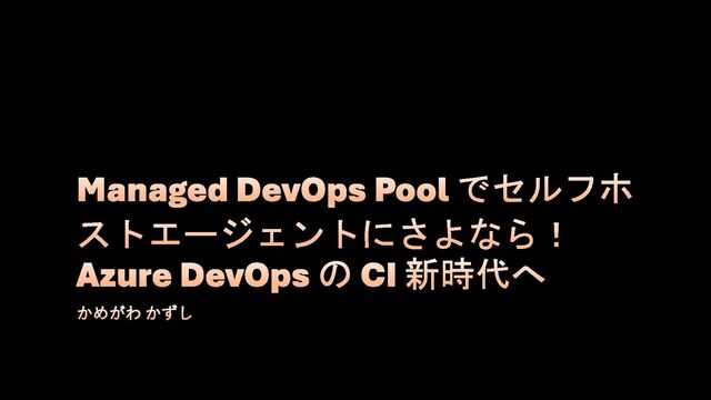 • イメージ作成大変 • プール管理大変 Self-hosted Microsoft-hosted VMSS Agent