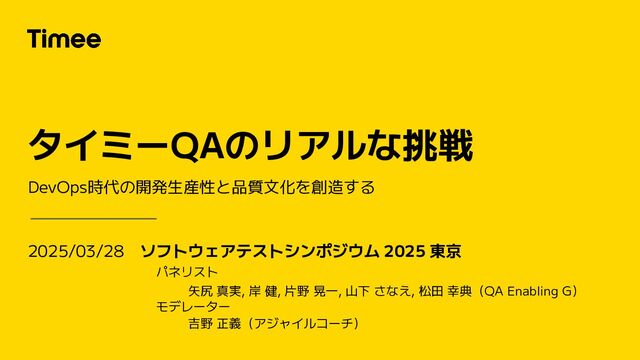 タイミーQAのリアルな挑戦 2025/03/28 ソフトウェアテストシンポジウム 2025 東京 パネリスト 矢尻 真実, 岸 健, 片野