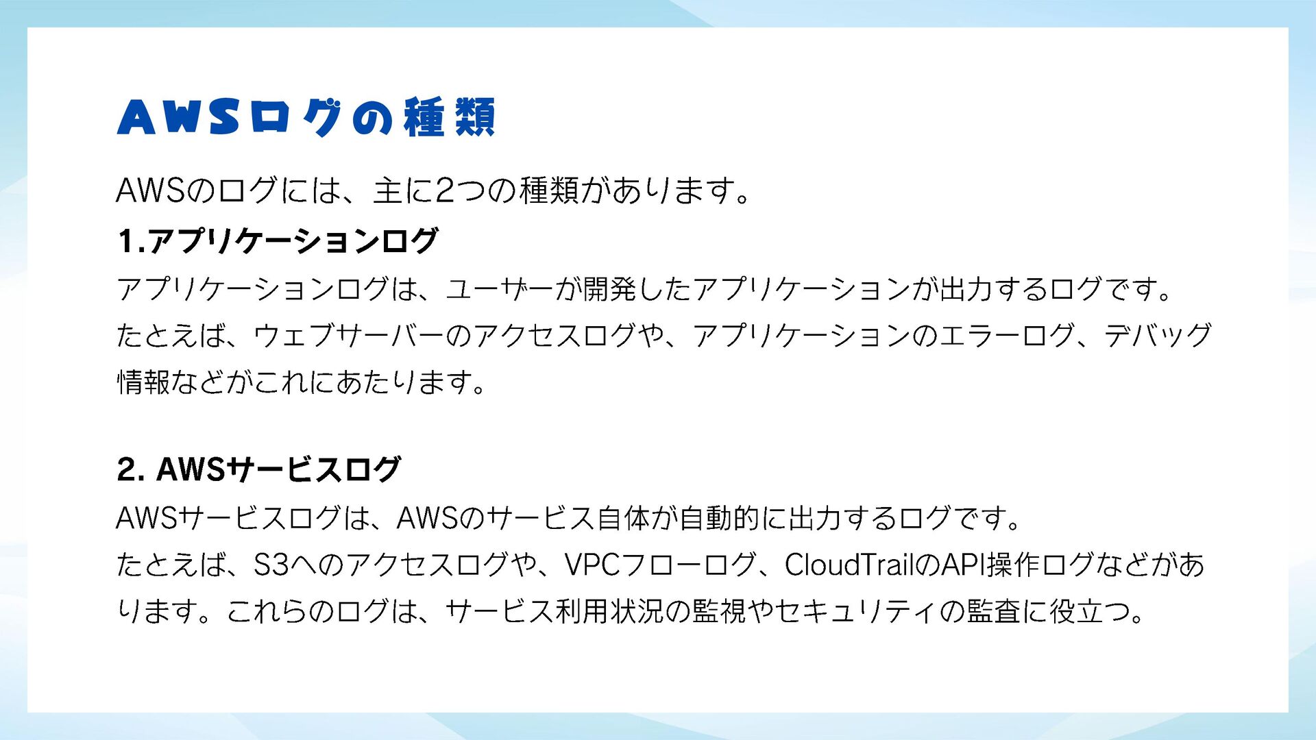 AWS アアアアアア AWS 土土土土土土土土 AWS 土土土土土土土土土土土土土土土土土土土土土 土土土土土 S3 土土土土土土土土土土 VPC 土土土土土土 CloudTrail 土 API 土土土土土土土土 土土土土土土土土土土土土土土土土土土土土土土土土土土土土土土土土土土土土土土 AWSログの種類