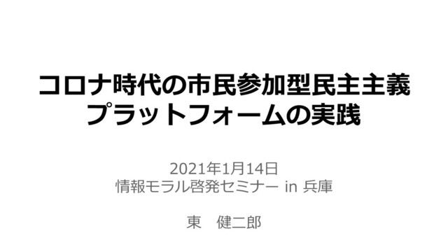 コロナ時代の市民参加型民主主義 プラットフォームの実践 2021年1月14日 情報モラル啓発セミナー in 兵庫 東 健二郎