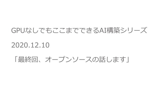 GPUなしでもここまでできるAI構築シリーズ 2020.12.10 「最終回、オープンソースの話します」