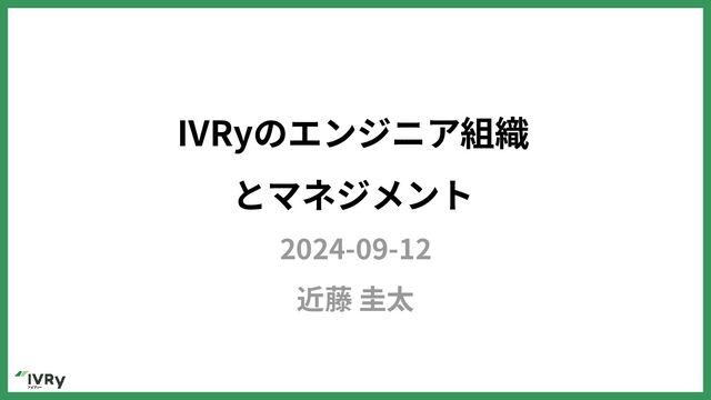 IVRyのエンジニア組織 とマネジメント 2024-09-12 近藤 圭太