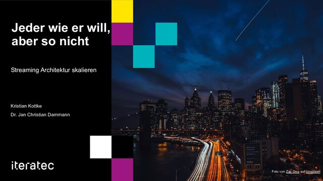 Architektur skalieren 15 § Kompatibilität einer konkreten Schema-Version – Message Pact (Consumer-Driven Contract, CDC) § Kompatibilität über verschiedene Schema-Versionen – Avro & Protobuf – Kompatibilitätslevel: Backward, Forward, Full, Transitive – Automatisches Ausgleichen von nicht-brechenden Unterschieden – Z. T. sind auch automatische Migrationen und Quality Gates möglich Geschenkt durch Avro + Schema Registry: § Kontrolle und Einhaltung der Schema-Konformität § Durch Kompatibilitätslevel lassen sich Avro-Schemata stabil weiterentwickeln § In „kleineren“ Umfeldern reichen deshalb Schemata zur Erleichterung der Zusammenarbeit Kompatibilität Kompatibilität Upgrade-Reihenfolge Backward Consumers Forward Producers Full Egal