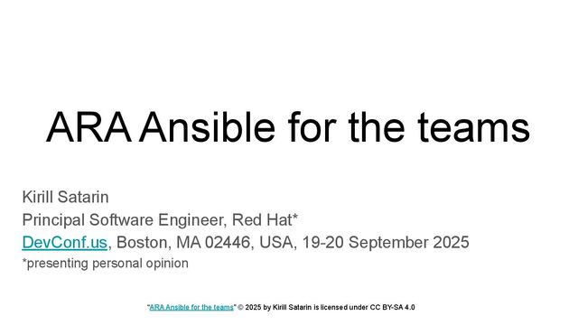 Key takeaways: Attendees will leave with practical knowledge to implement ARA in their environments and measurably improve their Ansible