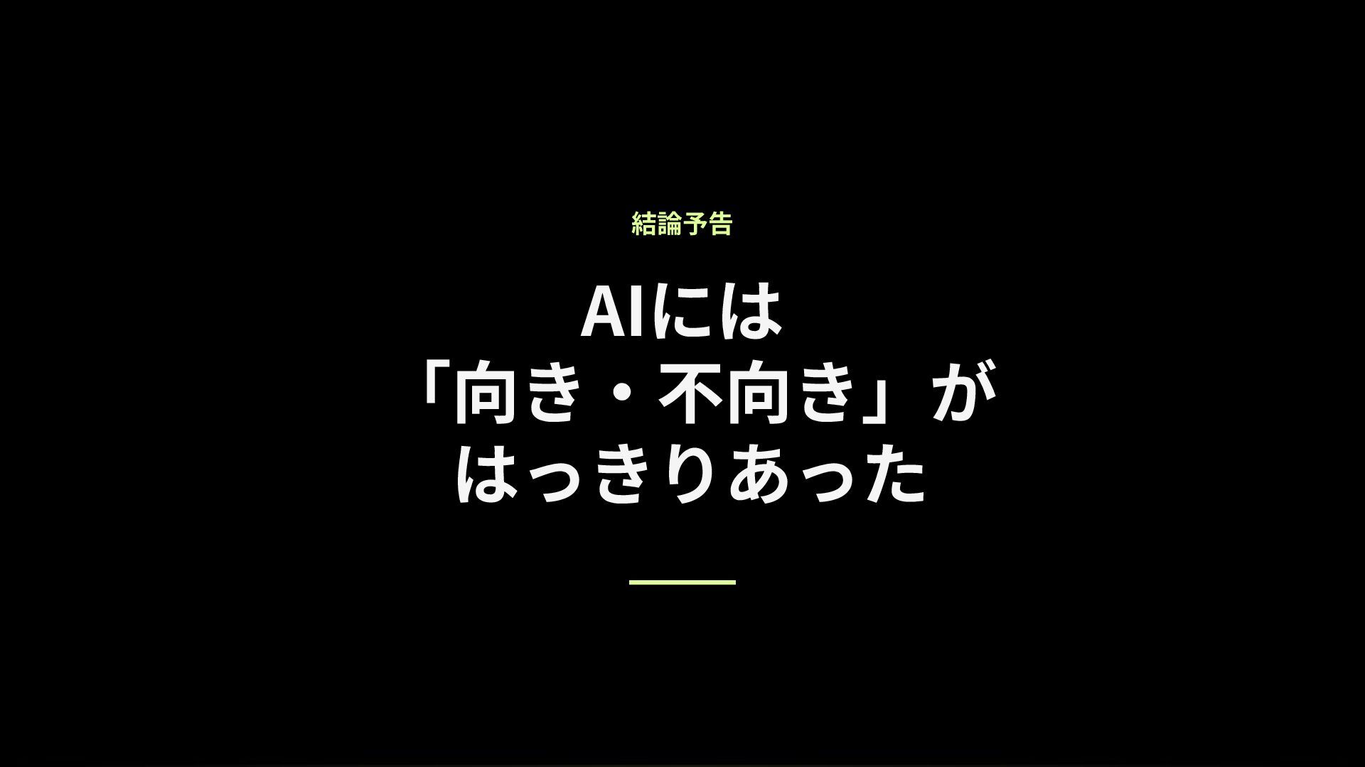 結論予告 AIには 「向き‧不向き」が はっきりあった