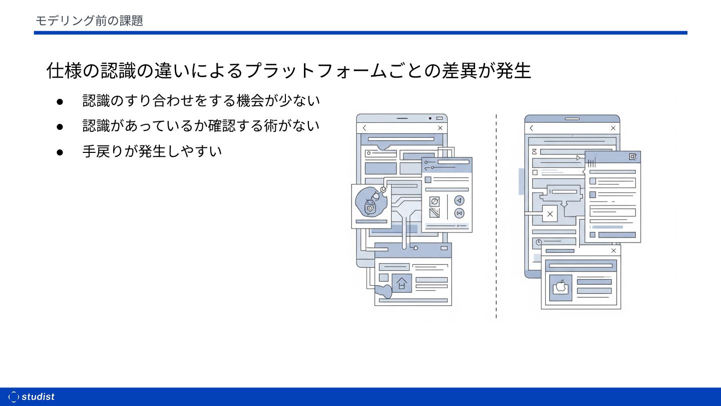 アプリ開発で行っているモデリングの内容と、そのメリットデメリット、どうして始めたのかを話しました。