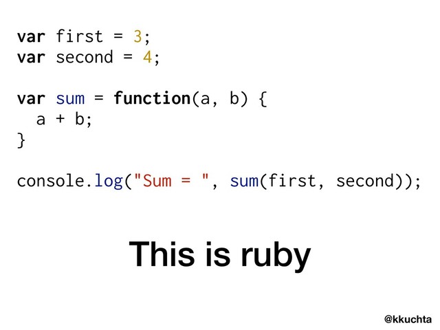 Some people love Ruby and some people love Javascript. Both will hate this talk. In a display of complete moral depravity, we'll abuse flexible syntax and metaprogramming to make valid Ruby code that's indistinguishable from Javascript. We'll use a variety of tricks to accomplish it that you can take home and use in more respectable code.