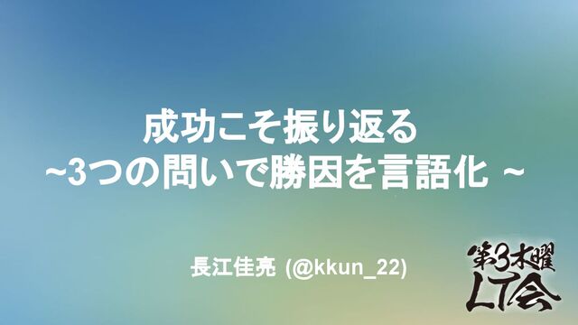 成功こそ振り返る ~3つの問いで勝因を言語化 ~ 長江佳亮 (@kkun_22)