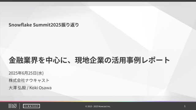 金融業界を中心に、どのような事例が多かったのかを類型化してお話ししました。 #dataopsnight #nowcast #snowflake #SnowflakeSummit