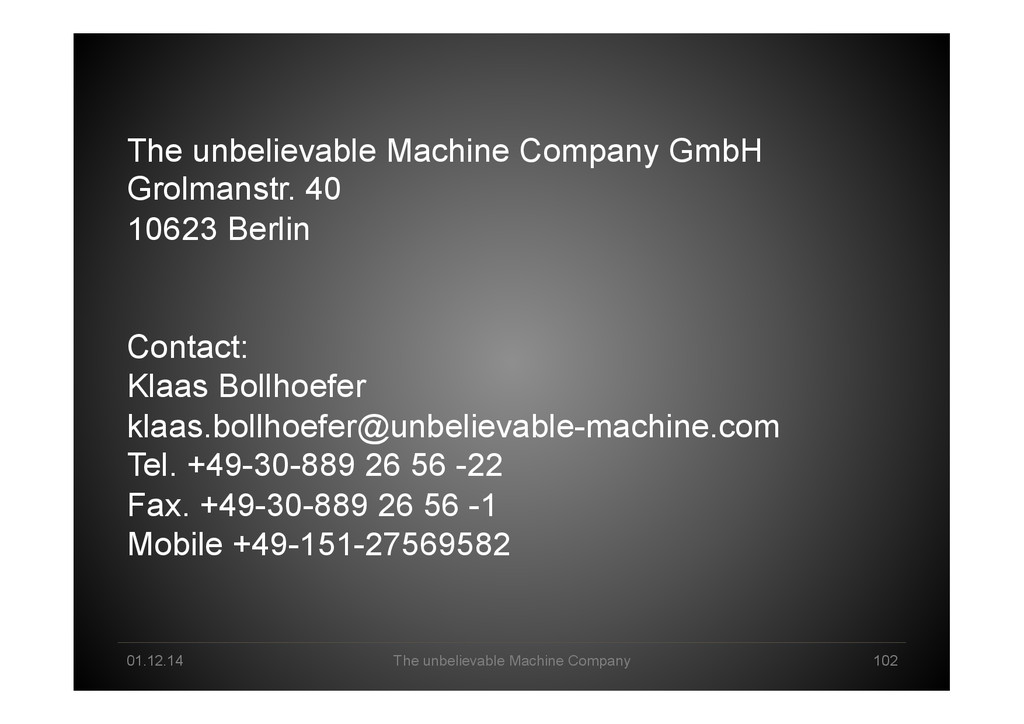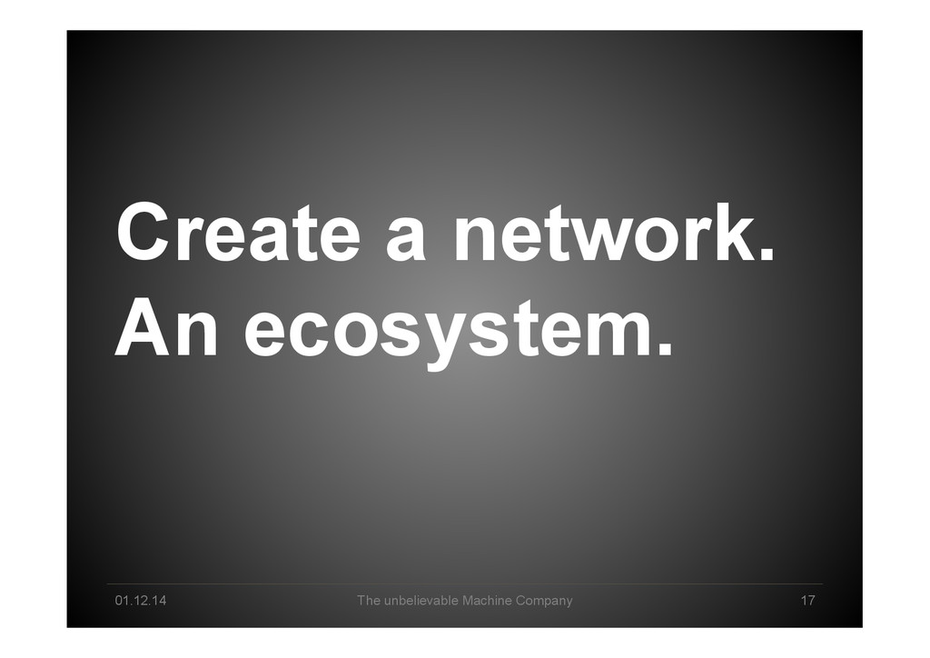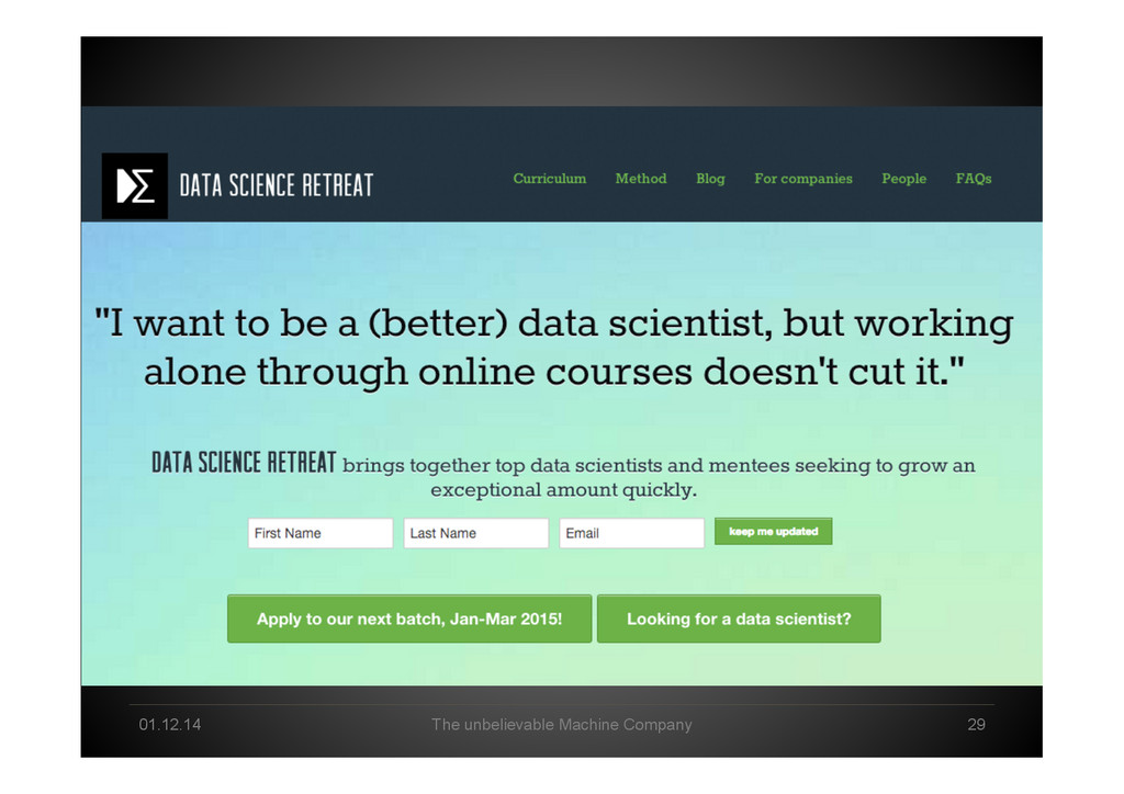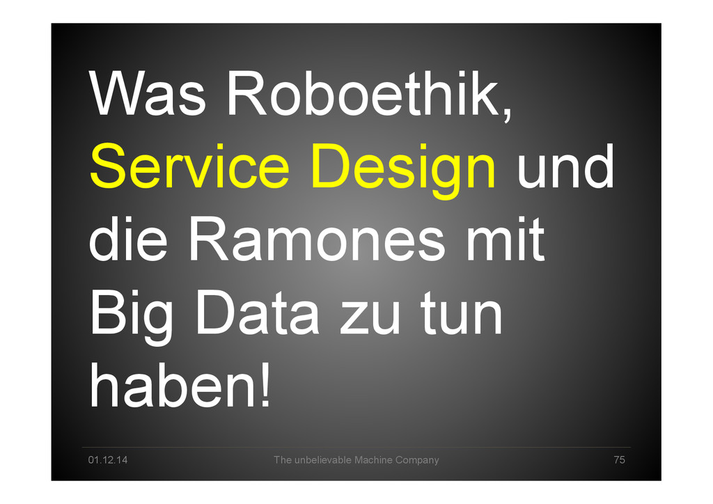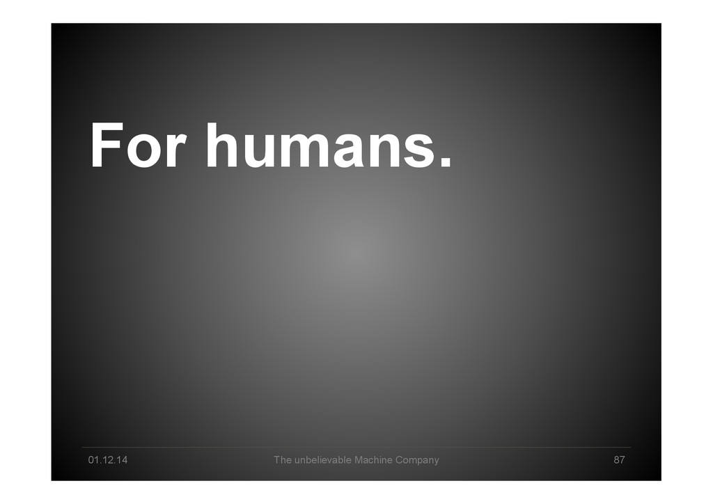 Pool Creation Explorative Analysis Automated Analysis Delivery & Storytelling Production / Data Product Business Owner Data Scientist Machine Intelligence Business Lane Data Science Lane System Engineer Infrastructure/ Cloud Technology Lane Human-Machine Interplay created 2013 by *um - The unbelievable Machine Company GmbH