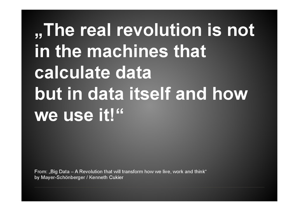 data but in data itself and how we use it!“ From: „Big Data – A Revolution that will transform how we live, work and think“ by Mayer-Schönberger / Kenneth Cukier