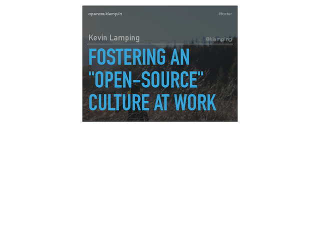 While not everyone project can be open-source, all of them can benefit from taking an "open-source" approach. In this talk, we'll look at how to foster a codebase and a culture that's open and encouraging to everyone. We'll cover what works and what surprisingly doesn't, all in an effort to foster a more open, maintainable and friendly project.